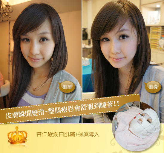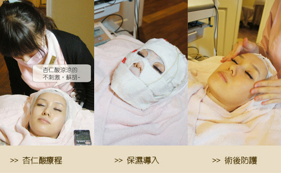 雷射及杏仁酸後肌膚吸收度較佳,接續後繼的美白或保濕導入保養讓效果加乘。