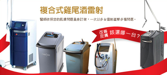 『複合式雞尾酒雷射』是取各雷射專精項目搭配,取各雷射之專精,分工合作。 例如皮秒雷射、淨膚雷射除斑,染料雷射退紅,亞歷山大雷射除毛,因此若醫美診所內有齊全的雷射機種配備,那在一次療程內,搭配各式雷射項目,達到多種肌膚問題治療效果。