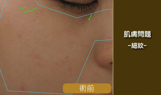 - 細皺紋:臉部皮膚表層所顯出淡淡的摺紋。