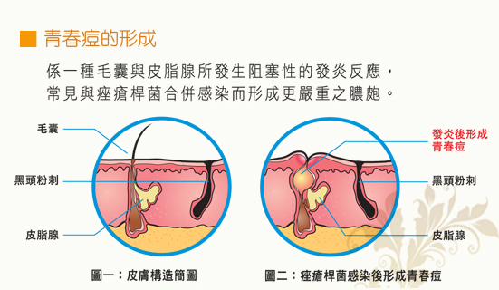 是窄頻可見光藍光光源,近距離地針對痤瘡桿菌中的紫質(PPIX)成份(內生性光感物質)作用,結合照射時間及光照強度,來達到抑制痤瘡桿菌,改善發炎性痘痘的功能。厭氧的痤瘡桿菌,以皮脂腺為生活中心,抑菌的同時,也會降低皮脂腺的分泌,讓粉刺不易生成,進而改善容易長 粉刺痘痘的情況。 另外,藍光也具有抑制皮脂腺,幫助控油並有效減緩粉刺生成速度。