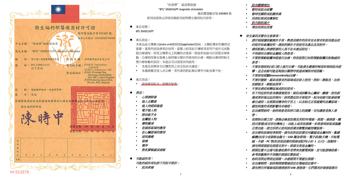 BTL EMSCULPT 通過美國FDA、歐盟CE及台灣衛福部核可