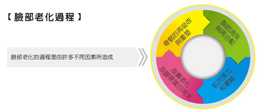 皮膚老化過程是由許多不同因素造成,想要留住青春,就要找出老化原因,除膠原蛋白持續隨歲月流失,骨骼、脂肪、肌肉等組織也會受到影響,而改變了臉部的線條與輪廓。