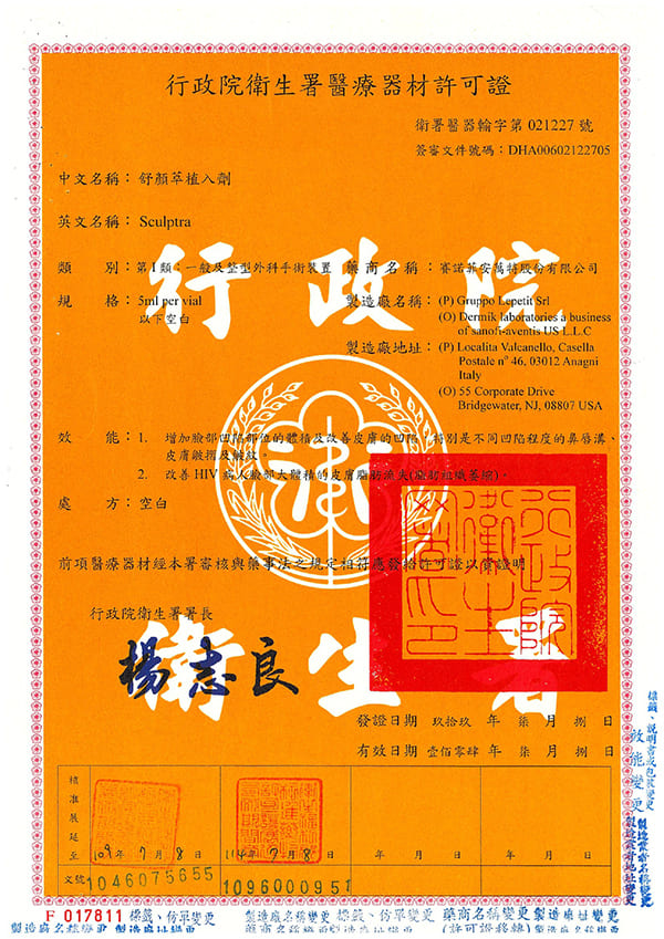 衛署醫器輸字第021227號Sculptra舒顏萃植入劑坊間俗稱4D舒顏萃/4D聚左旋乳酸/4D童顏針/4D童妍針/仿單含適應症禁忌症說明